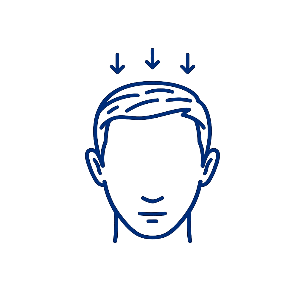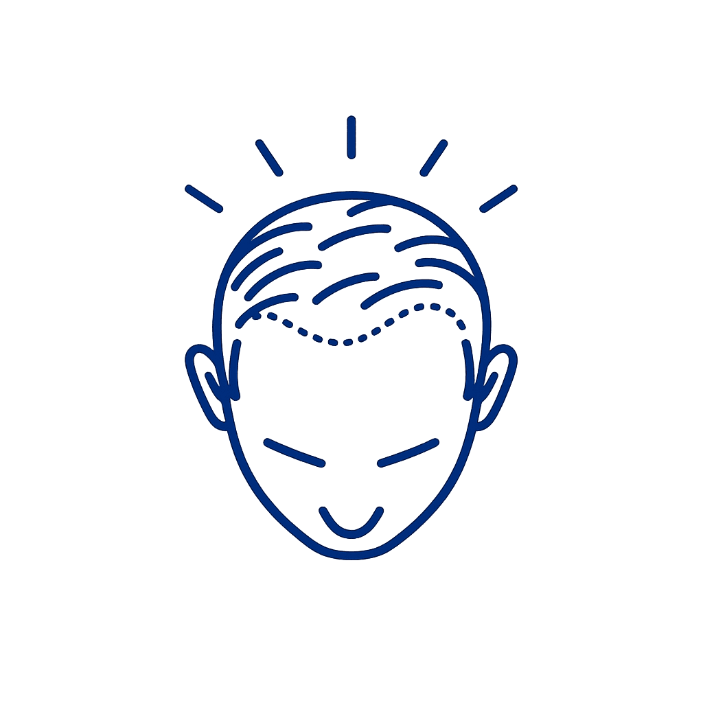 Male hair loss (androgenic alopecia) is driven by a hormone called DHT that shrinks hair follicles over time. We carefully manage DHT with a low-dose oral finasteride (1mg) to slow this effect. Topical minoxidil (2.5mg) increases scalp blood flow to encourage growth. Together these FDA-approved therapies preserve existing hair and can regrow some lost strands. Our physicians explain each step so you know what to expect.